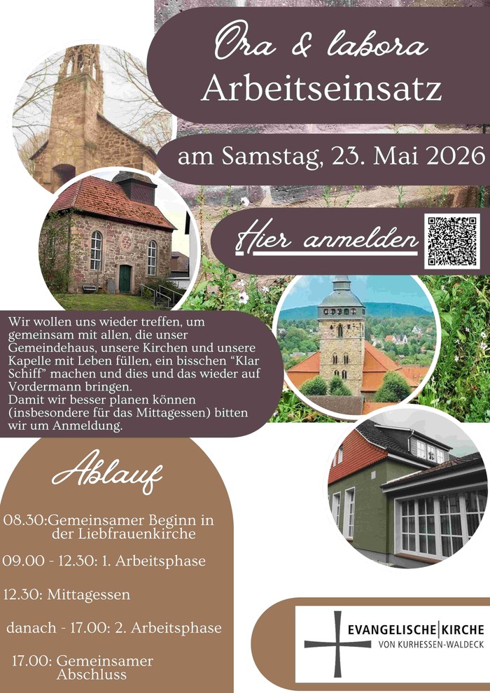Wir haben eine Möglichkeit zur Anmeldung geschaffen. Das ermöglicht eine bessere Planung der Arbeitseinsätze und des gemeinsamen Mittagessens am 23. Mai. Bei der Anmeldung kann angegeben werden, wo überall Handlungsbedarf und Arbeitseinsatz erforderlich ist. Hier ist der Link zur Anmeldung: https://forms.churchdesk.com/f/2A_1gRn_aZ