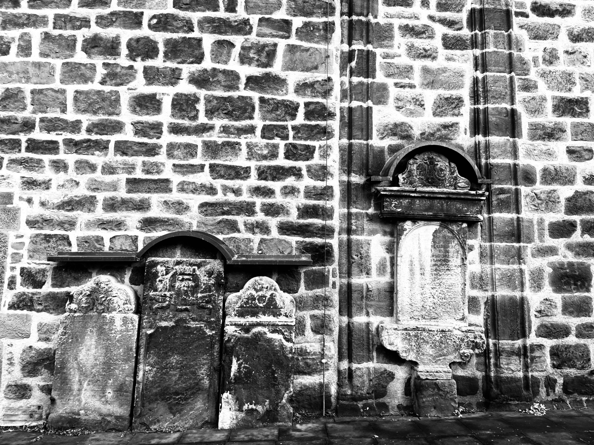 Das Epitaph im südlichen Seitenschiff der Familie Hans Motz von 1594, der Vater mit fünf Söhnen und die Mutter mit sechs Töchtern. Zu sehen ist ein Tafelbild mit der Grablegung Christi und der Kreuzabnahme.